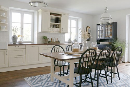 17 2020 Li 1 Ausstellung 9 Kueche Esstisch Sessel Sitzbank Teppich