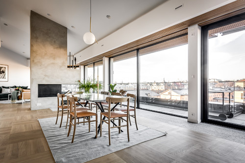 Skandinavische Moderne Wohnzimmer Mit Kuche Esstisch Sofa Und